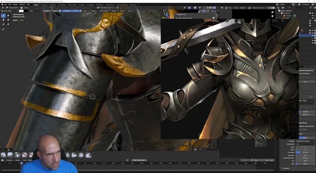 制作此角色绝对没有使用任何付费程序。所有高多边形、重新拓扑、UV 映射、烘焙和纹理制作均在 Blender 中完成,并附带一些免费插件。